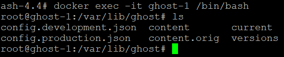 ssh에서 sudo 권한을 얻은 후, 다음 명령어를 입력해 Ghost 컨테이너 쉘에 접속하자.