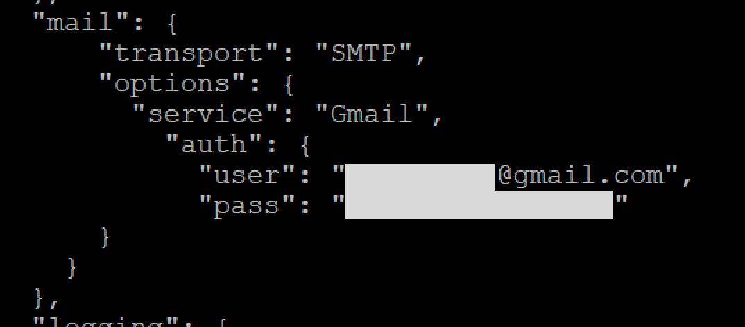 cat config.production.json그러면 7번째 줄에 Mail에 대한 설정이 존재한다.