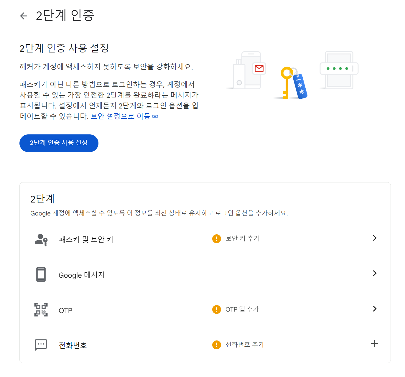 우선 연동할 Gmail에서 2단계 인증(2FA)를 활성화 해야 한다.
