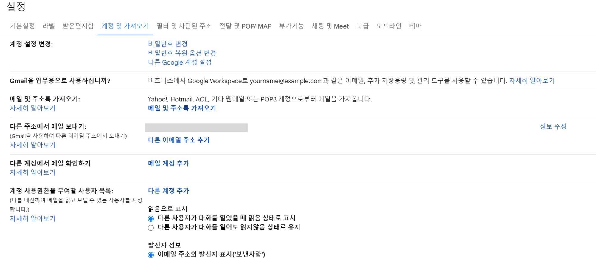 다음으로 Gmail 설정에서 발신 메일을 추가하고자 한다.