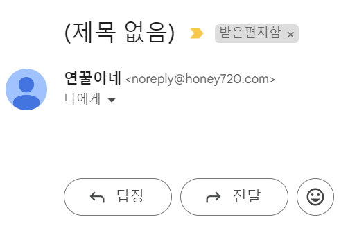 내가 설정한 사용자 설정 주소로 메일을 보내면 대상 주소인 내 Gmail로 메일이 도착한 것을 확인 가능하다.