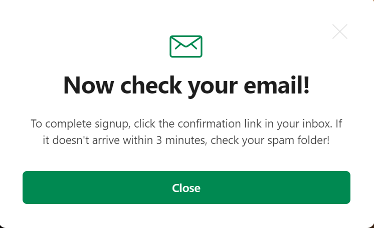 확인 링크가 포함된 이메일이 등록한 주소로 전송되었다.