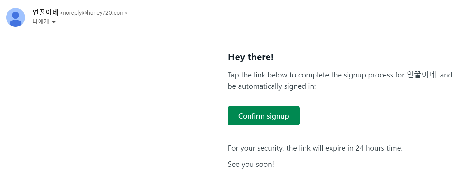이제 나의 블로그로 돌아가서 회원가입을 진행하면 확인 메일이 정상적으로 발송될 것이다.