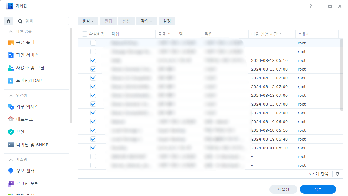 시놀로지에는 시간에 맞춰 동작을 서비스나 스크립트를 수행하는 스케줄러가 있다.