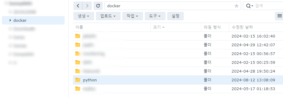 나는 docker 공유폴더에 python이라는 폴더를 생성하여 거기 안에 업로드했다.
