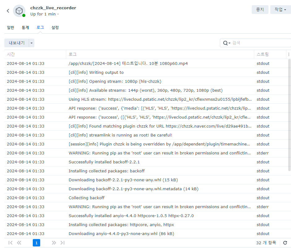 시놀로지 도커로 치지직 실시간 녹화 프로그램 만들기