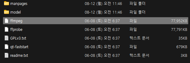 디렉터리 속에는 인코딩 프로그램인 ffmpeg가 존재하는데 이것을 리눅스 버전으로 갈아 끼워야 한다.
