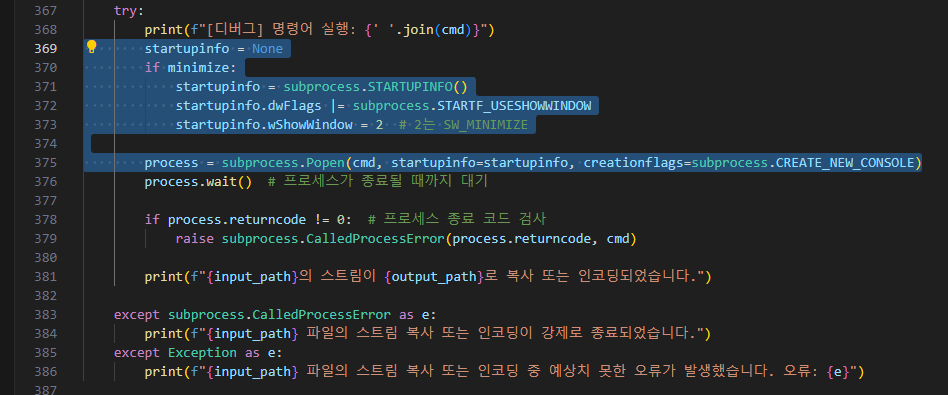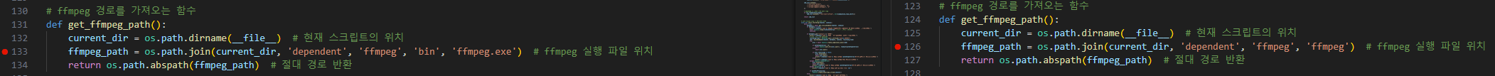 여기서 끝이 아니고 소스 코드에서 ffmpeg 실행 디렉토리를 알맞게 수정해야 한다.